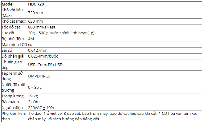 Đặc tính riêng biệt của máy cắt HobbyCut HBC 720 III: