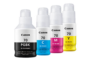 - Sử dụng hộp mực : GI-70 PGBK: 6,000 pages và GI-70 C/M/Y: 7,700 pages với độ phủ mực tiêu chuẩn, In ảnh 4x6" GI-70 C/M/Y: 2,200 pages.