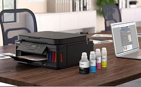 - Với hộp mực đi theo máy Canon Pixma G6070 cho số lượng bản in lên đến 7.700(màu), 6.000(đen trắng) trang với chi phí mực rẻ mang lại hiệu quả kinh tế cao.